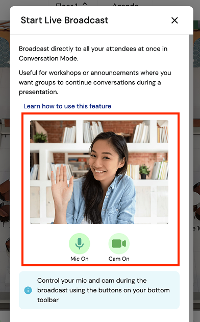 Broadcast in Conversation Mode unites the ever popular Conversation Mode with the functional Presentation Mode to create a hybrid conversation-presentation experience for all your attendees.