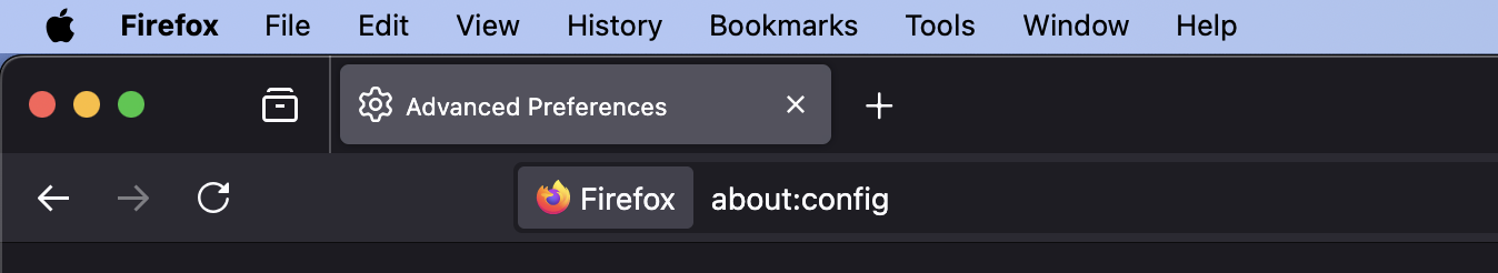 1. Open a new tab in your Firefox browser and type 'about:config' into the URL address bar
