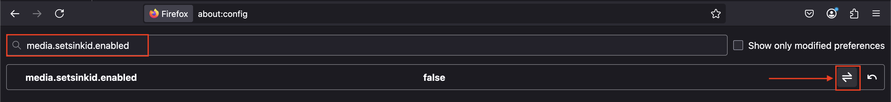 2. Type in 'media.setsinkid.enabled' into the search bar