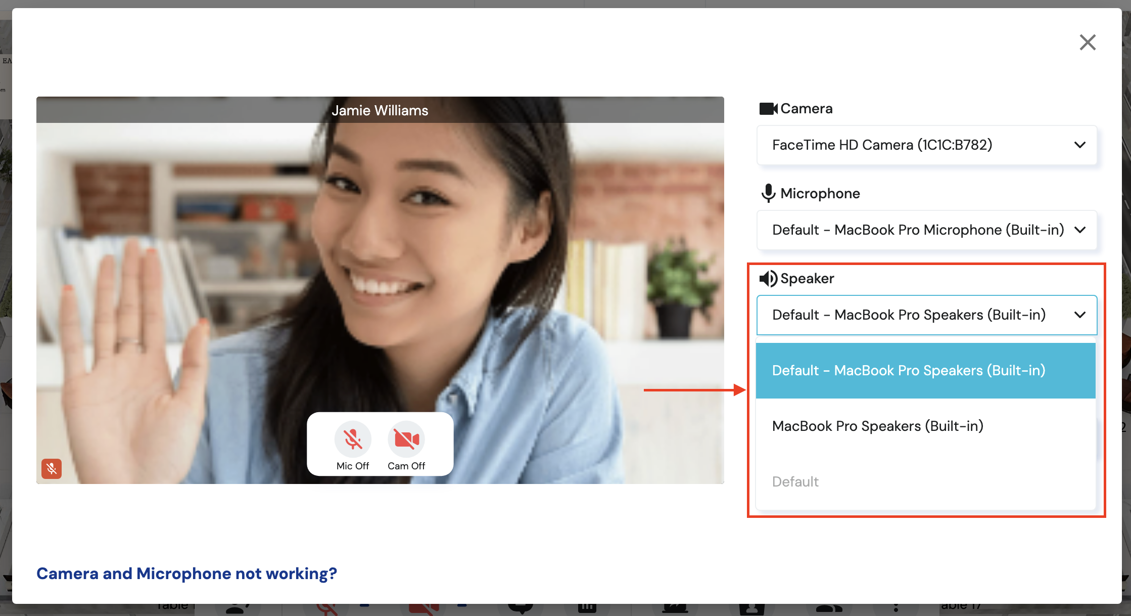 If you are using Safari, you will not be able to select a Custom Speaker as this browser does not yet support this functionality.