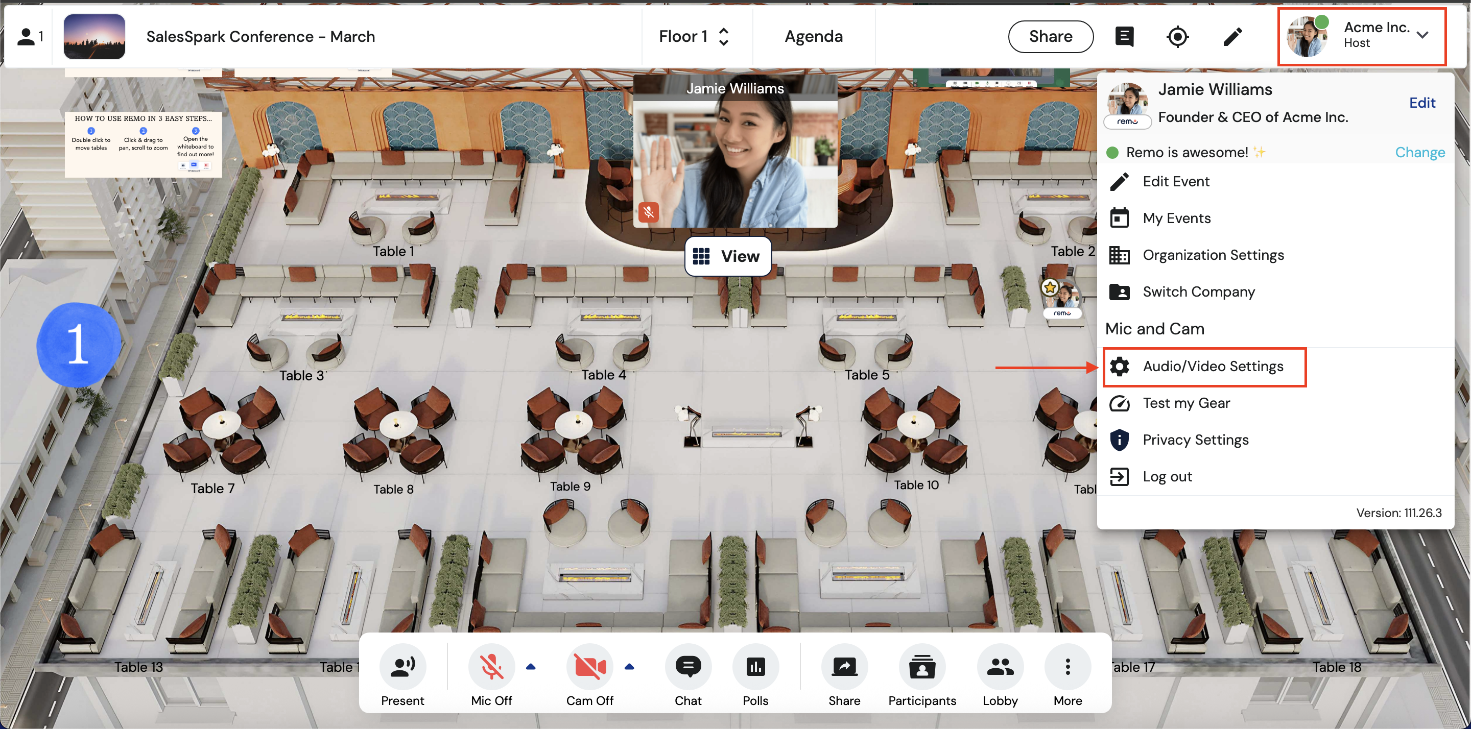 5. Click your profile picture in the upper right corner of your screen and select 'Audio/Video Settings'