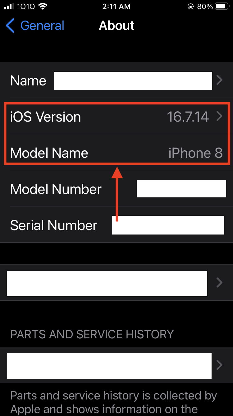 For example, below the iOS version is listed as iOS 16.7.14, this is usually referred to as iOS 16