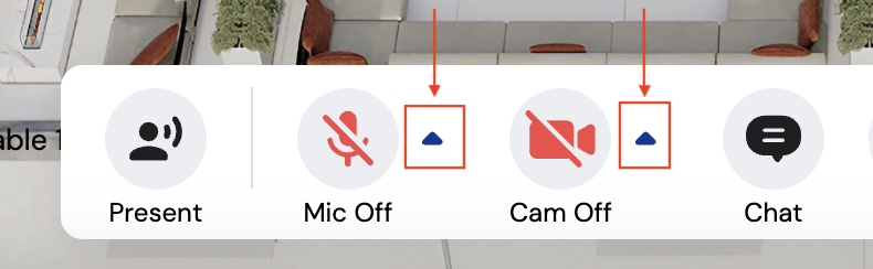 1. Click the triangle next to the camera and microphone icons in the bottom menu toolbar