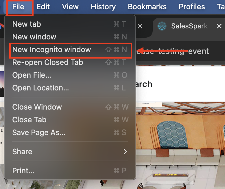 1. Incognito/ Private Window on Chrome and Safari: Click 'File', and then 'New Incognito/Private Window'