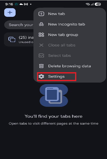 2. Tap on the menu icon (3 dots in the upper right corner of the browser window)