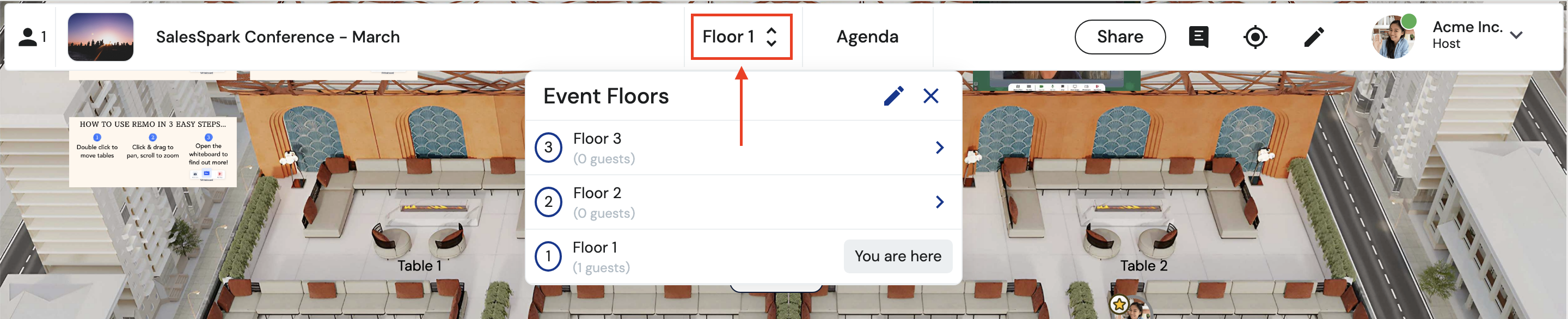 You can also rename floors to make navigation easier. For example, naming floors after various discussion topics, pre-assigned groups, or sections of an event. Check out this article on changing table and floor names for more information.