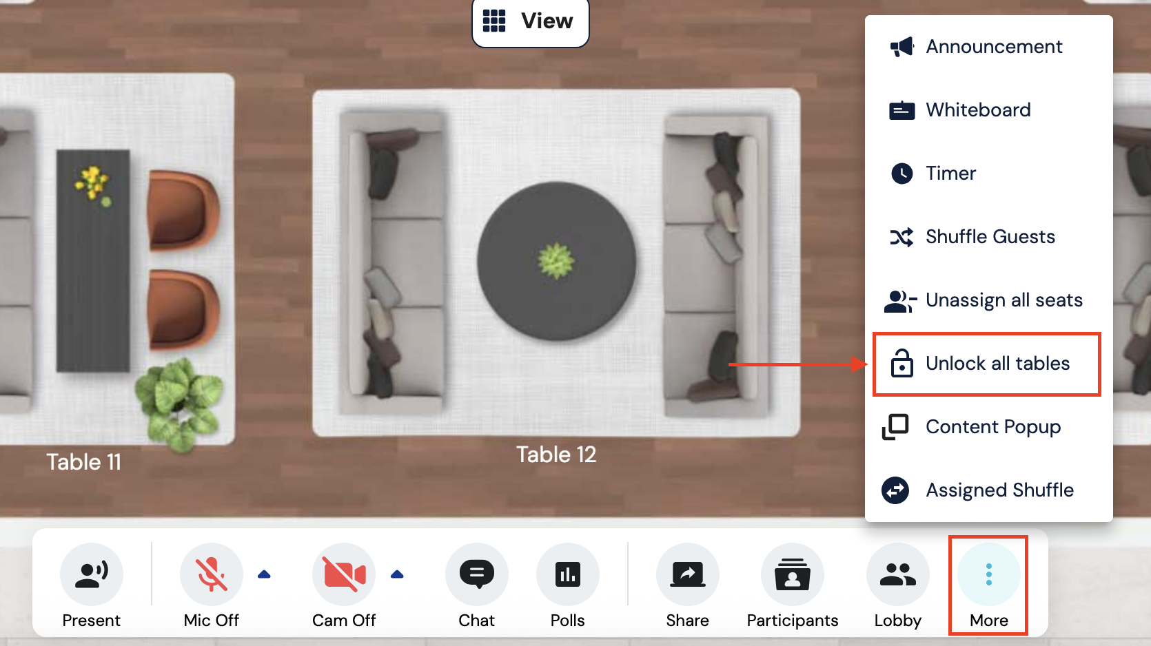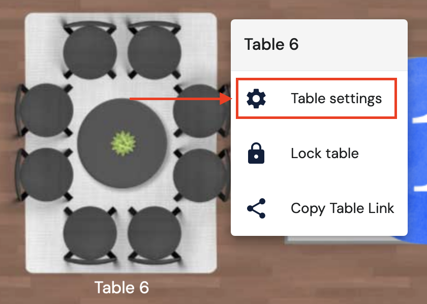 1. Hover over the table you want guests to be locked into and click the 3 vertical dots in the upper right corner of the table (or right-click on the table).