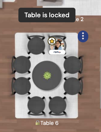 Event Hosts can now lock a table in Remo to prevent other users from joining the table. This allows for a variety of use cases from wanting a private conversation (without fear of someone dropping in randomly) to hosting a workshop or training (where you have fixed groups).