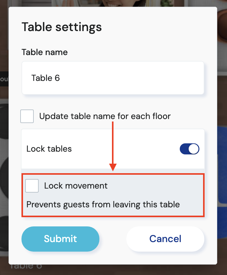 - Lock Movement: Available only when a table is locked, this option prevents guests currently at a locked table from leaving the table