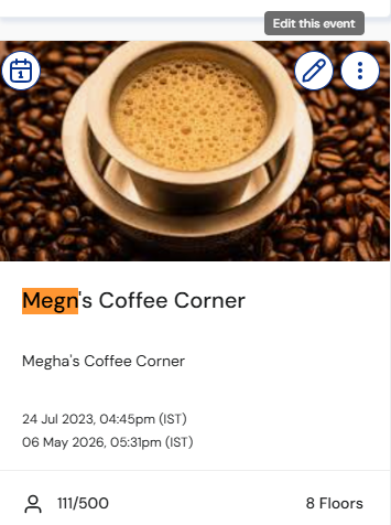 1. Go to your My Events dashboard and locate the event you’d like to live stream. Click the pencil icon to go the event’s settings