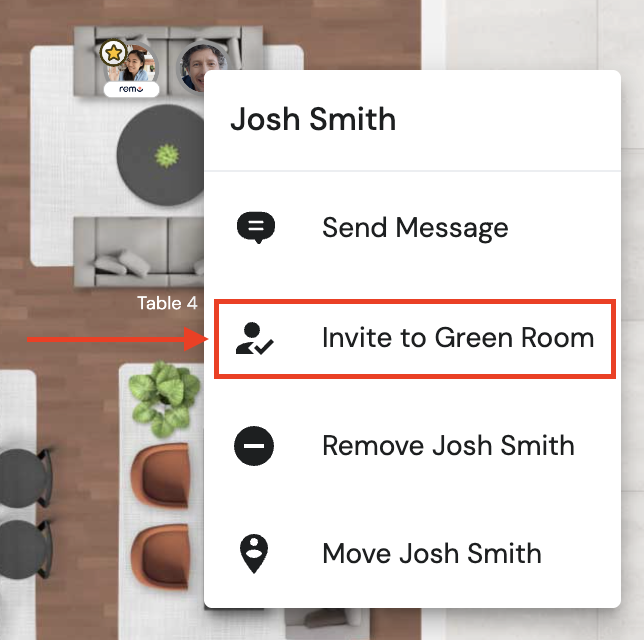 1. Invite VIPs to your event as speakers! This way they have free access to the Green Room. They’ll be able to join and leave the Green Room as they please just by double-clicking (like any other table).
