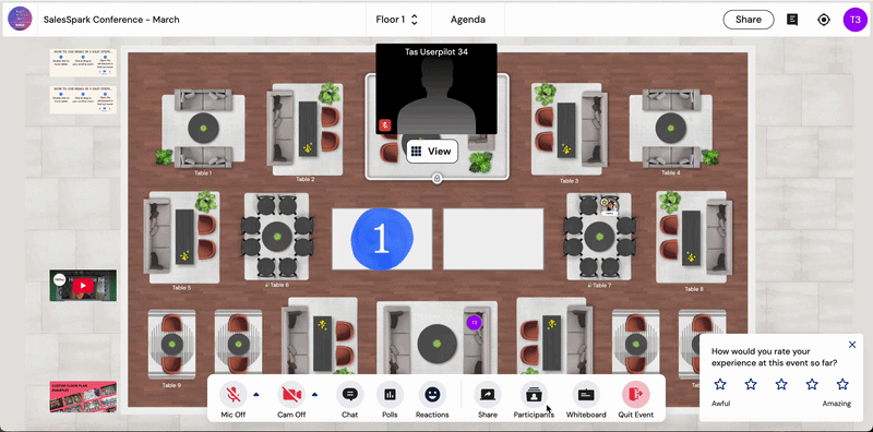 The Guest Experience Survey is a simple 5-star rating question shown to all your guests and speakers during your event asking them "How would you rate your experience at this event so far?".