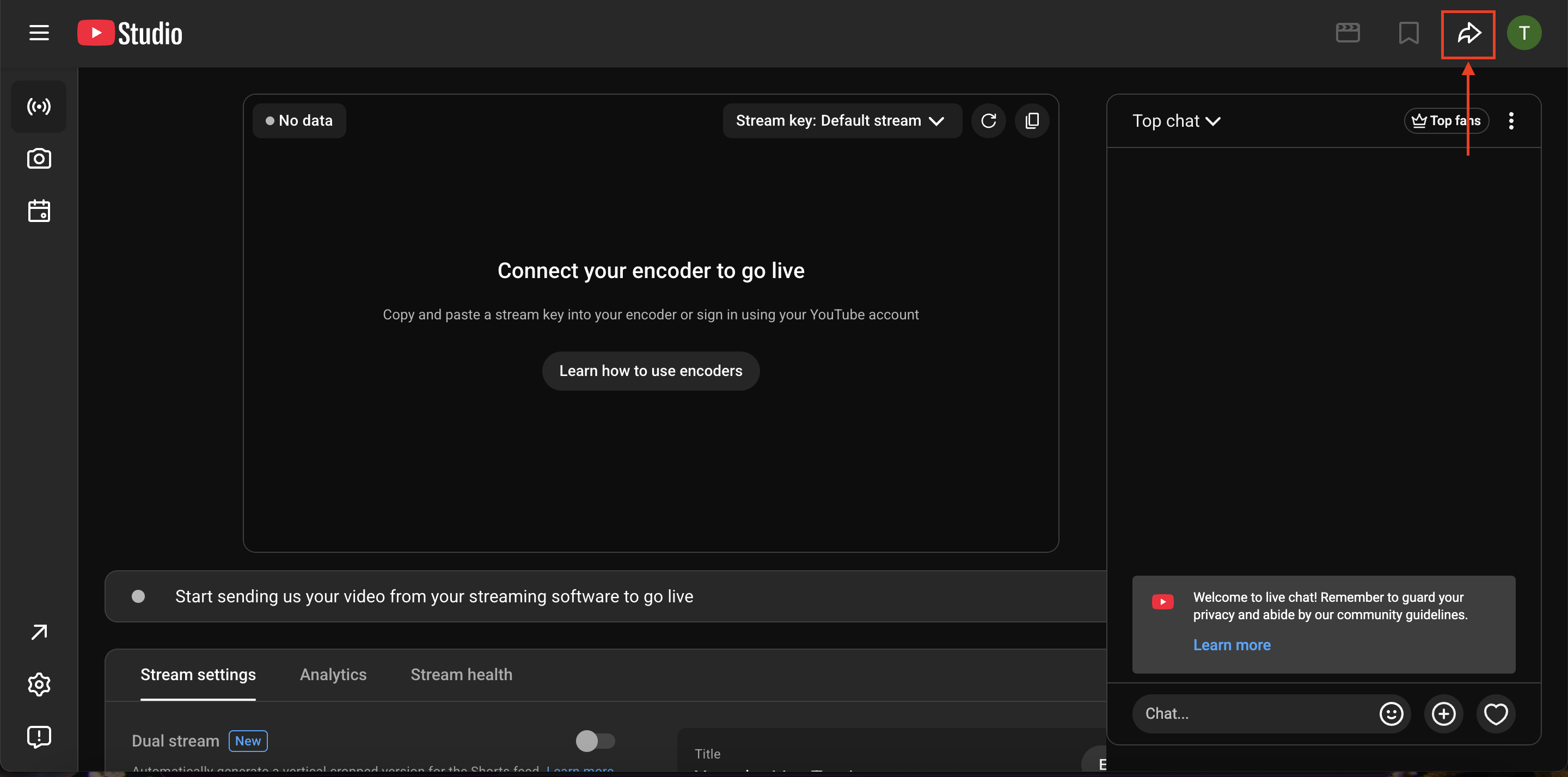 Please note when you're ready to start your Youtube Livestream you must make sure you click 'Go Live' in the upper right corner of your stream settings!