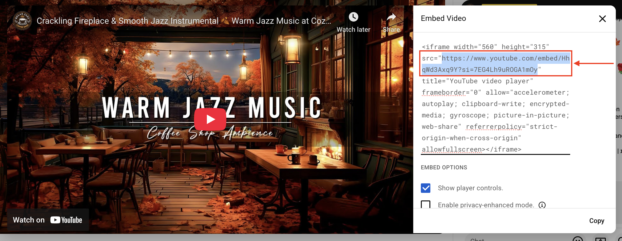 3. Copy the link next to the Src sttribute