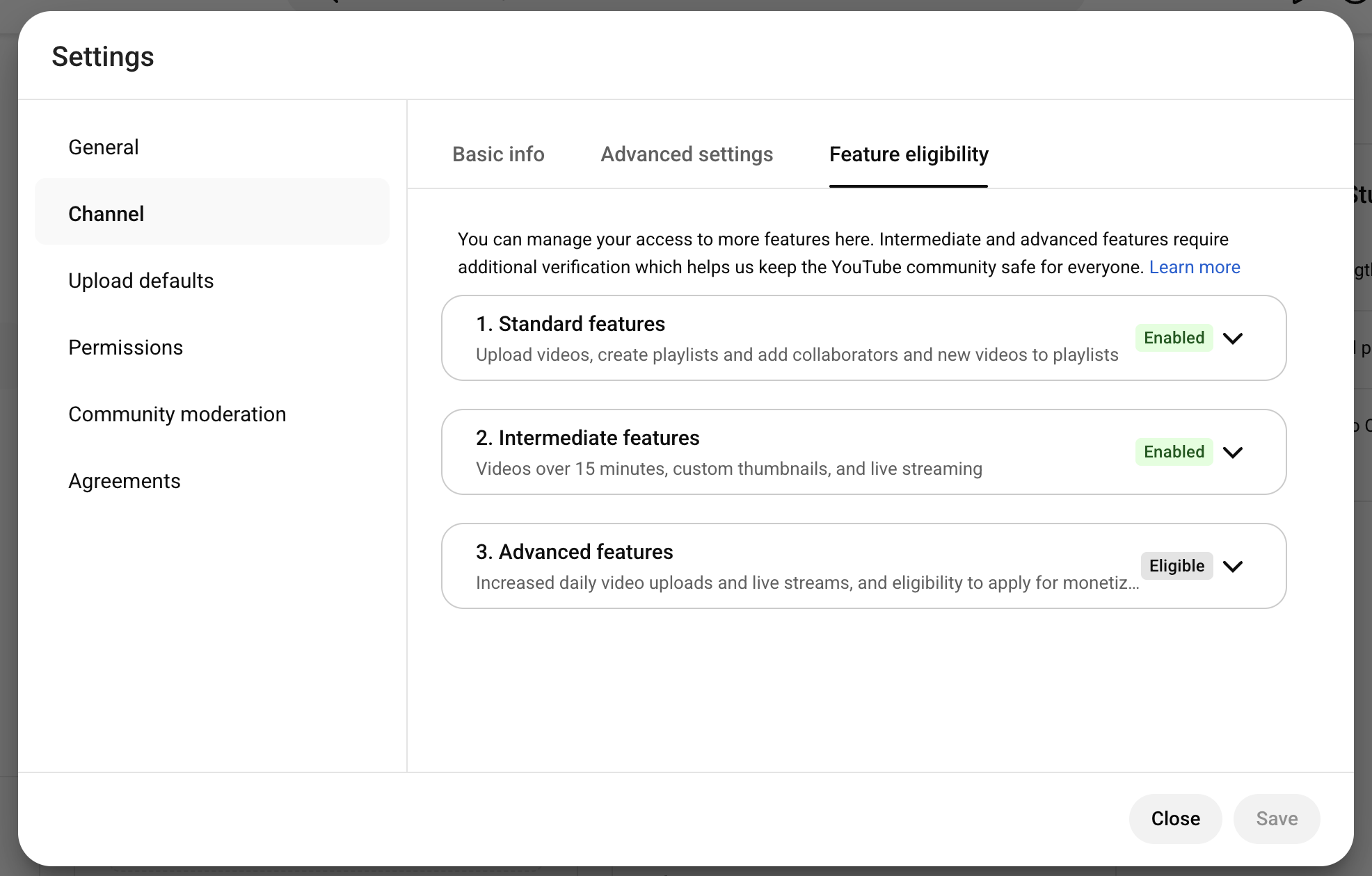 3. Select 'Feature Eligibility', then expand the 'Intermediate features' section and click 'Verify phone number'.