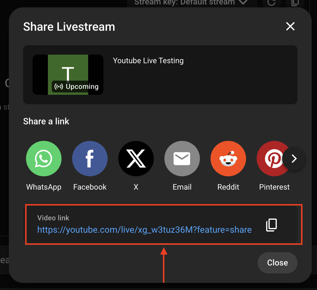 8. Copy the link where your live stream will be live at.