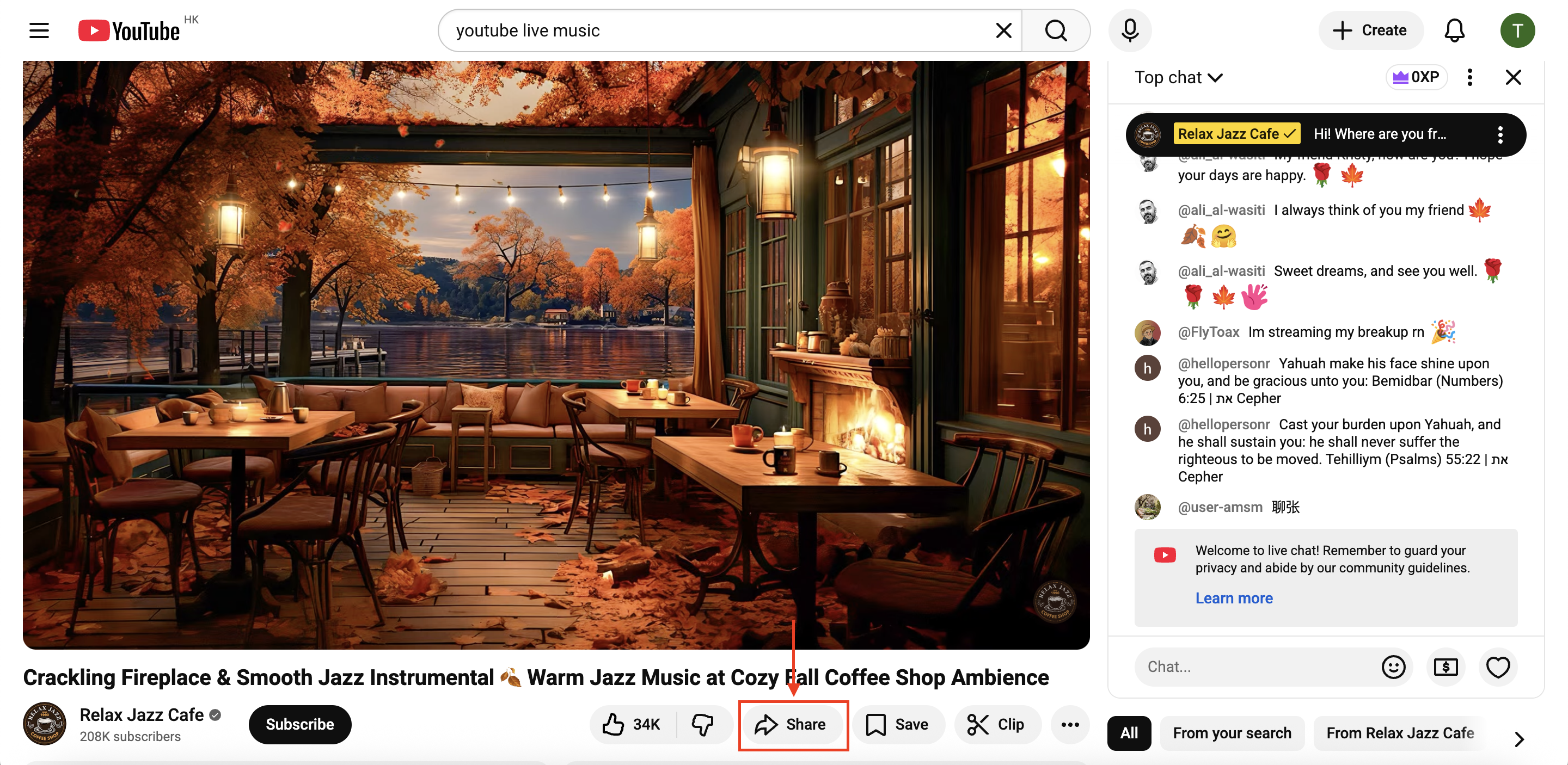 1. Open the Youtube Live you would like to stream into your event (please make sure you have the required permissions or right to stream the video)