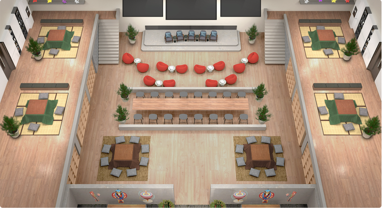 用途:集会、交流、パーティー、ハッピーアワー等 |