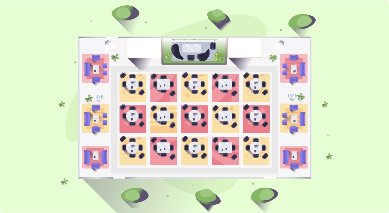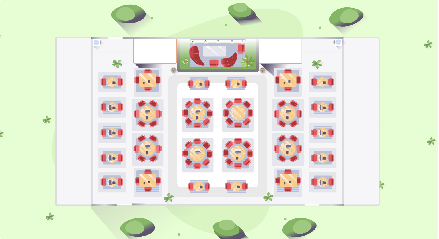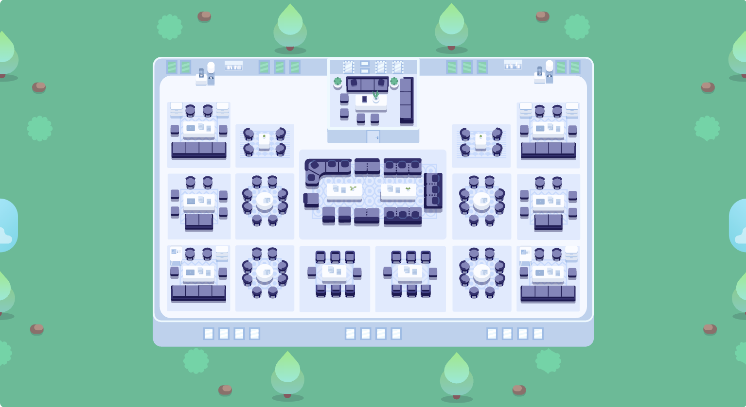 また、既定で用意されたフロアプラン以外にも、ご自身で作成(カスタムフロアプラン)を利用することも可能です。※ ご契約のプランにより、カスタムフロアプランの利用は、有料となりますので、ご注意下さい。