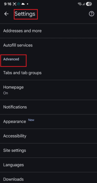 2. アドレスバーの右側で、メニューアイコン(画面右上に表示される︙をタップする)>[設定]の順にタップします。