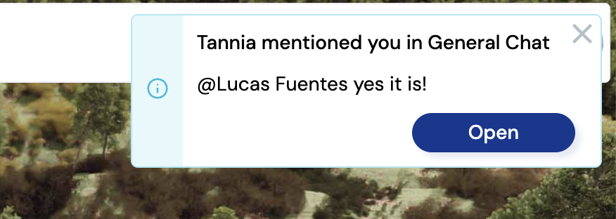 - チャットで誰かがあなたをメンションすると、ベル音の通知とともに、画面の右上にも通知が表示されます。